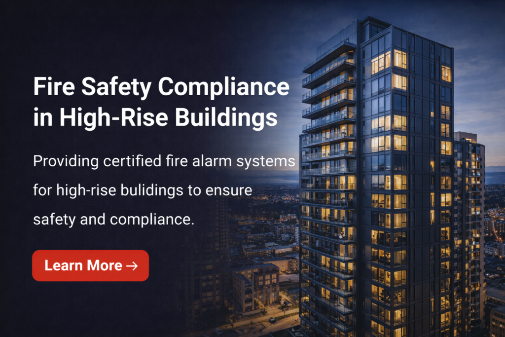 Specialist fire alarm systems designed for high-rise environments, ensuring compliance, system integration, and reliable life safety protection.