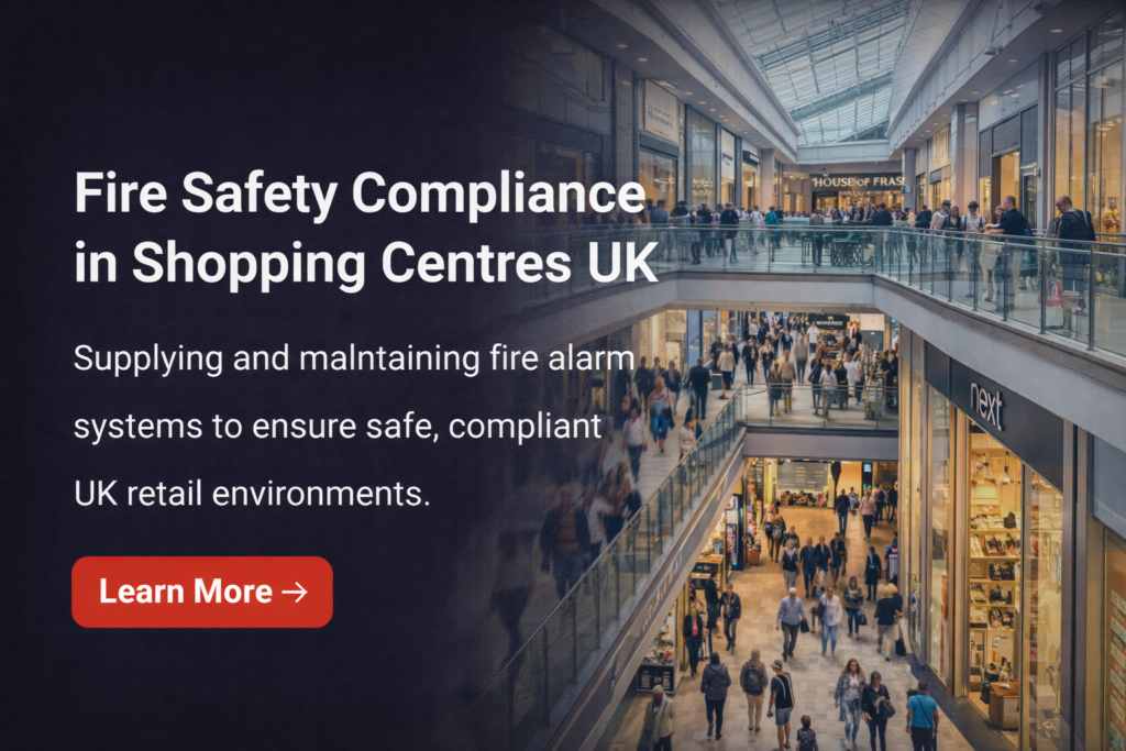 Installation and maintenance of compliant fire alarm systems for shopping centres, ensuring safe, operational, and regulation-compliant environments.